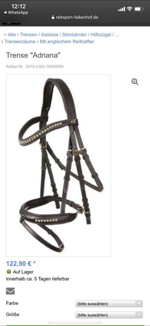 "Adriana", wysokiej jakości i szlachetna uzda snaffle * angielski łączony nosek * zakrzywiony pasek na łuk brwiowy z przyciągającymi wzrok plastikowymi dżetami * błyszczące plastikowe dżetony na nosku * skórzane/miękkie podszycie * wyściełany naczółek z wycięciem na ucho dla szczególnie wrażliwych koni.
