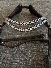 Snaffle anatomiczny islandzki brązowy - Na sprzedaż mało używana uzda anatomiczna dla koni islandzkich w kolorze brązowym z brokatowymi gwiazdkami.