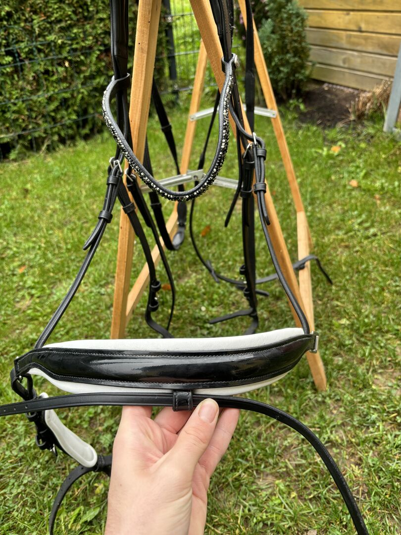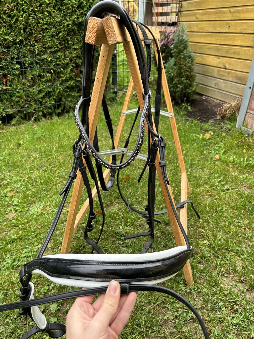 Snaffle Czarny - Sprzedam używany, ale bardzo dobrze utrzymany snaffle od QHP w rozmiarze warmblood. Był używany regularnie, ale zawsze był starannie pielęgnowany i jest w naprawdę dobrym stanie. Są normalne, niewielkie ślady użytkowania, ale nie ma żadnych uszkodzeń.