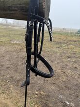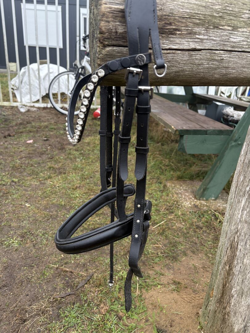 Snaffle / czarny / mosiądz / WB z paskiem na brwi / z lejcami - Snaffle od Fouganza z SHOWMASTER Browband Change Fast Diamond (jak nowy), używany, ale bez uszkodzeń. Również używane wodze, również od Krämer. Warto kupić więcej