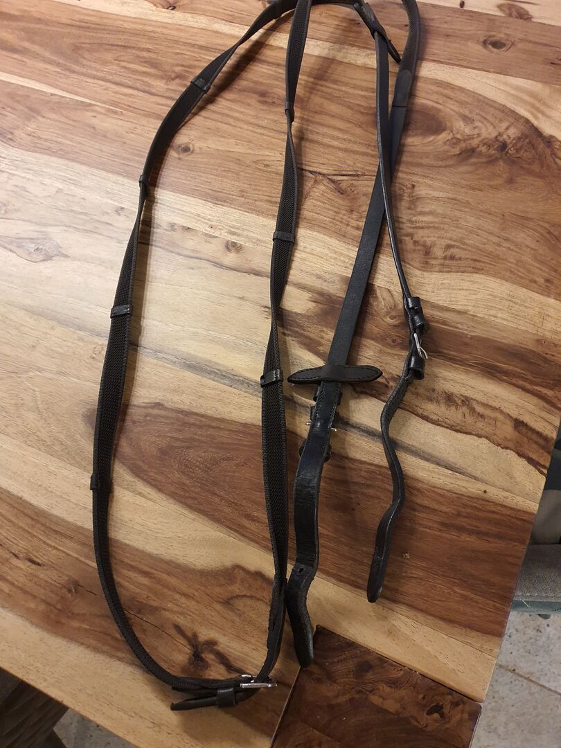 Snaffle english combined - Sprzedam uzdy firmy Ascott wykonane z miękkiej jak masło skóry z doskonałym paskiem na czoło. Uzda była założona na konia tylko 3 razy.