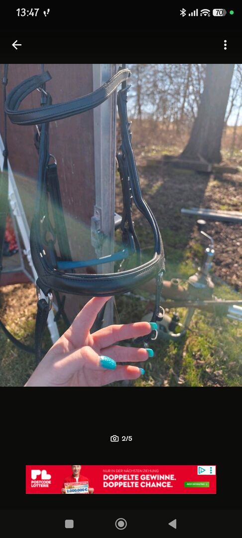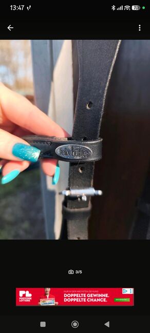 Nowa cena wynosiła 100 €. Przed wysyłką zostanie ponownie całkowicie wyczyszczony. Sprzedaję tylko uzdę bez lejców i bez bitu. Niestety nie pasuje idealnie do mojego wałacha.