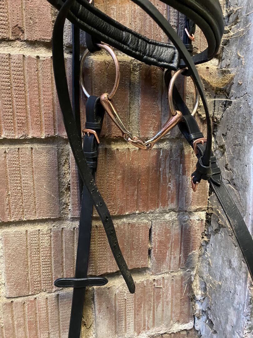 Snaffle od Showmastera - Oferuję mało używane snaffle firmy Showmaster wraz z lejcami i bitem w rozmiarze 14.