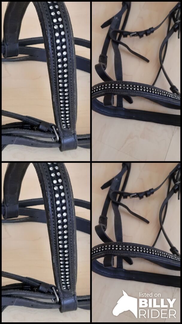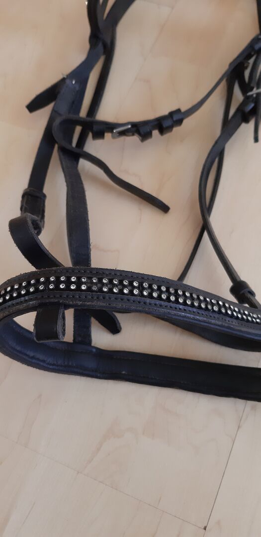 Snaffle pełnej krwi - Uzda w dobrym stanie, rozmiar pełnej krwi angielskiej. Wszystkie kamienie są obecne. Snaffle był noszony 2 razy.