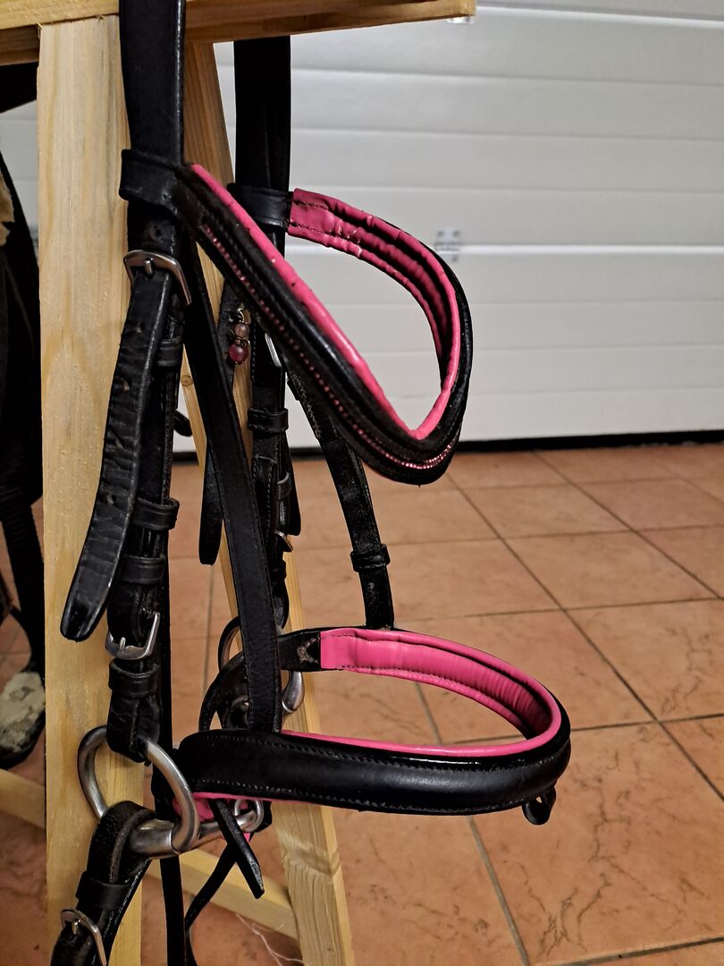 Snaffle shetty z różową podszewką i bitem - Snaffle jest sprzedawany z gryzakiem i lejcami.