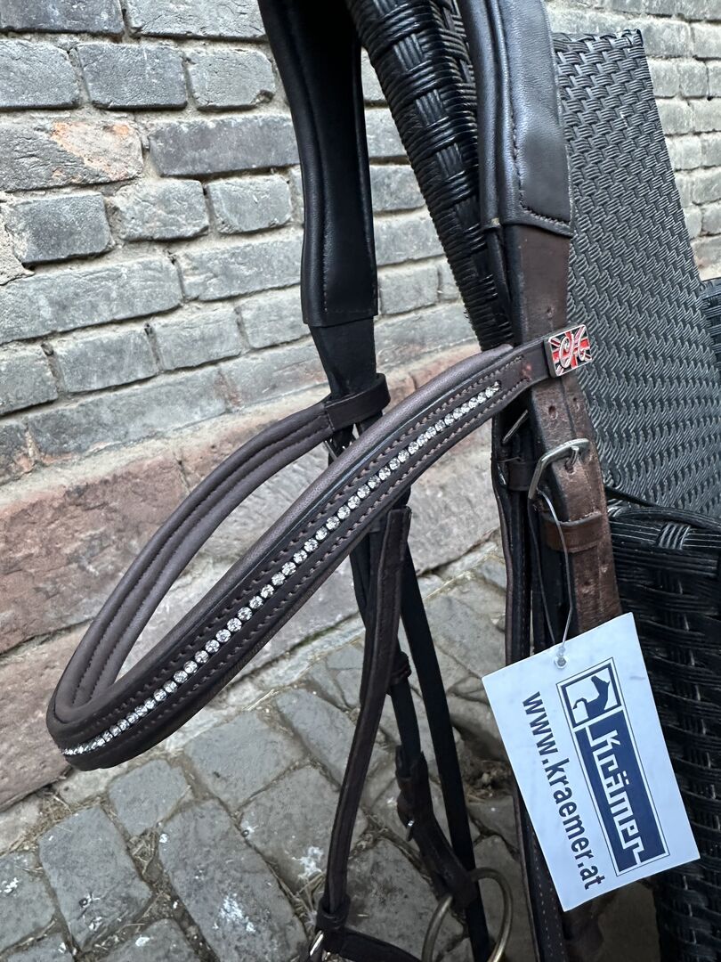 Snaffle w kolorze brązowym - Sprzedaję moją brązową skórzaną uzdę od Krämer w rozmiarze Warmblood/Full. Ponieważ kupiłem tę uzdę na szczęście, niestety nie pasuje ona do mojej klaczy. Uzda nigdy nie była używana i dlatego jest zupełnie nowa.