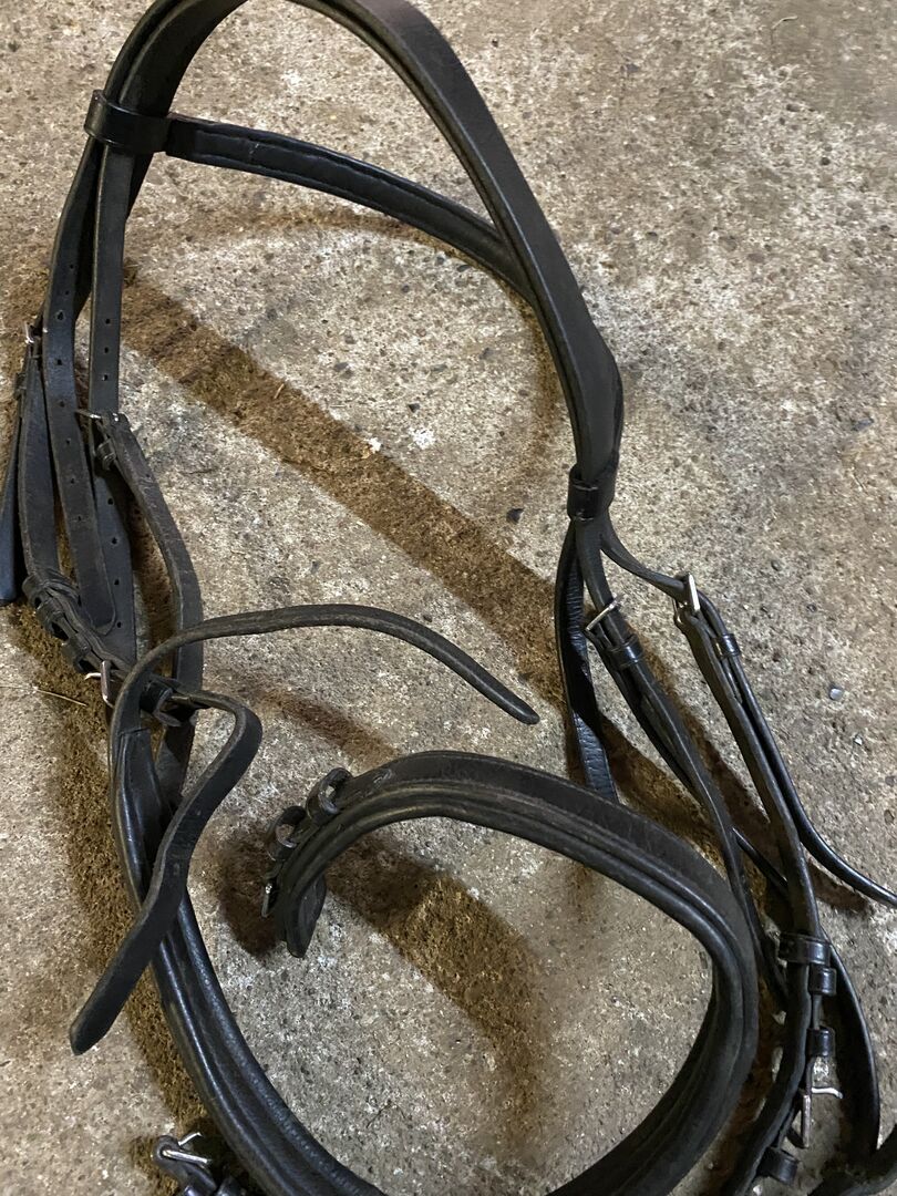 Snaffle with reins wb - Wb snaffle w kolorze czarnym, gładkie. Opaska na czoło pochodzi od firmy Kieffer. Dodam jeszcze szelki.