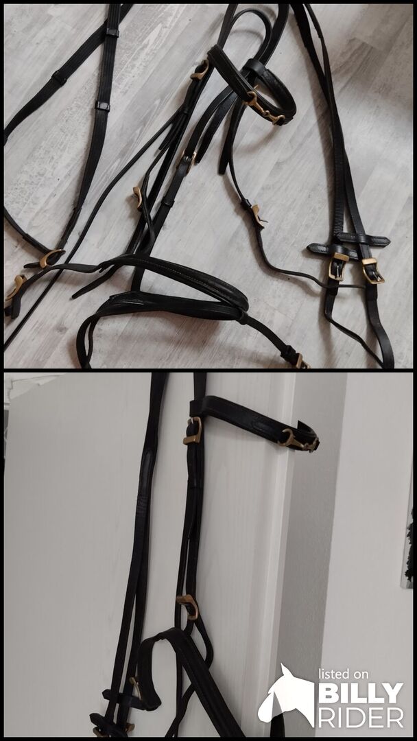 Snaffle z mosiężnymi sprzączkami - Sprzedaje mój były show snaffle, rozmiar WB, w bardzo dobrym stanie. Zadbany i gotowy do użycia, producent nieznany, od kilku lat wisi w szafie. Sprzedane tylko dlatego, że nie pasuje do mojego obecnego konia. Dostępny PayPal.