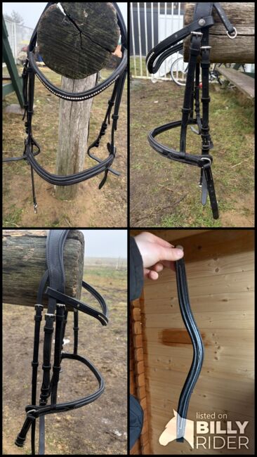 Snaffle z ozdobnymi przeszyciami, skórzane, czarne, kolczaste - Mało używany snaffle z 2 browbandami.