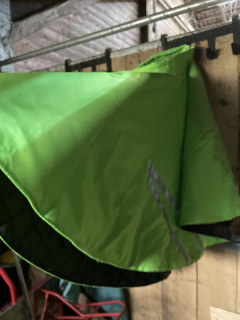 Spódnica jeździecka zima - Neonowa zieleń z odblaskowymi paskami, podszyta polarem, pasuje na rozmiar M-L, z rzepem na brzuchu. Paski na nogi dla dobrego trzymania się nogi jeźdźca. Był tylko w stajni, nigdy nie był na koniu! NP 179,-.