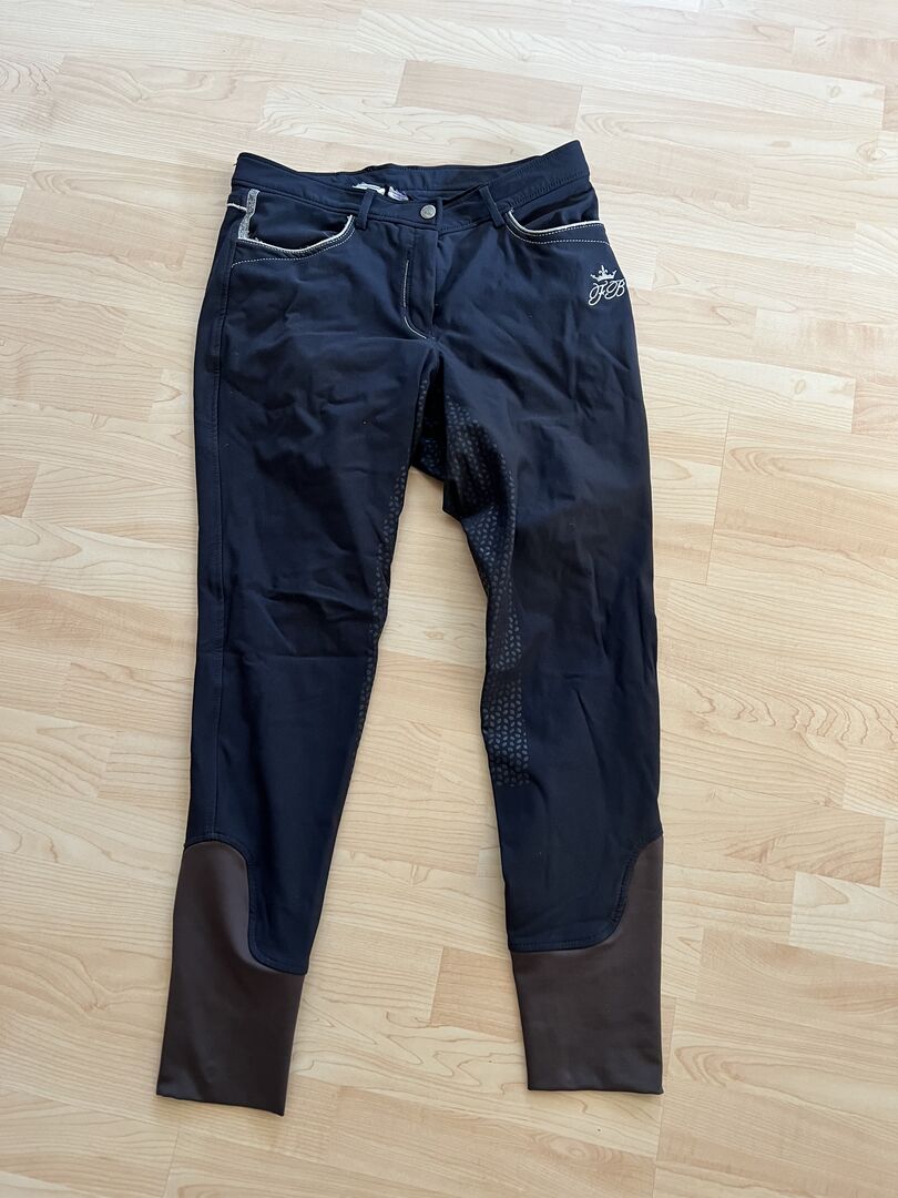 Spodnie Felix Bühler z pełnym siedziskiem i uchwytem 42 - Oferujemy bryczesy Felix Bühler Kristin w kolorze granatowym 42. Spodnie mają elastyczną nogawkę i są wykończone cekinami na tylnych kieszeniach spodni.