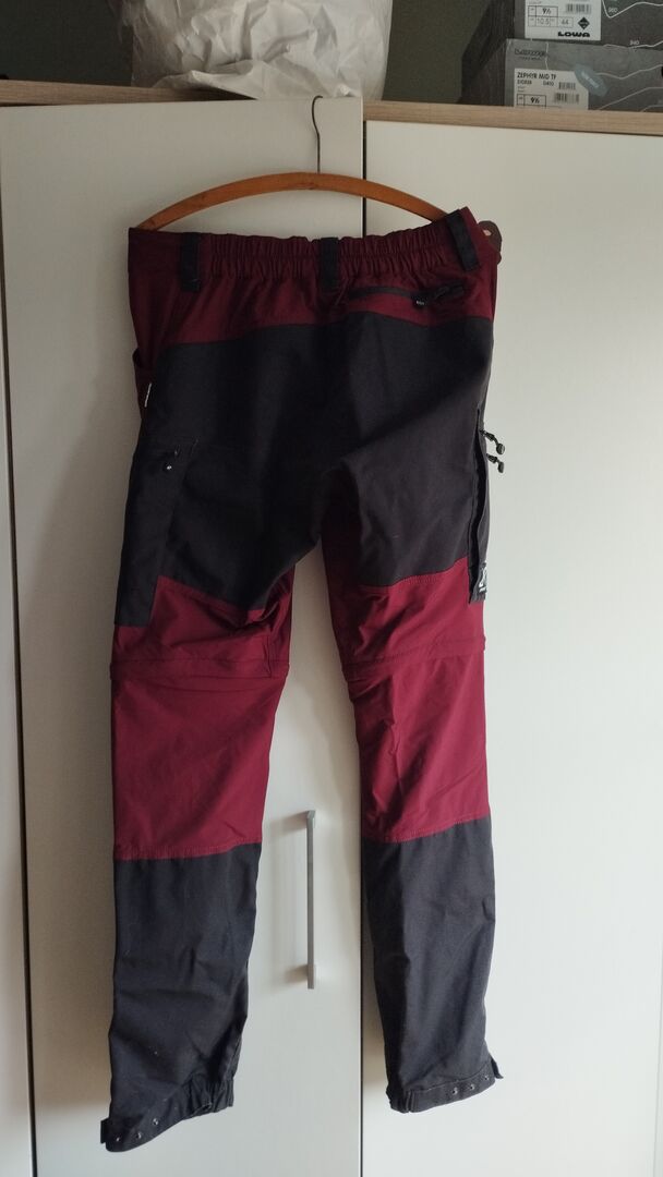 Spodnie Revolution Race GPX Zip-Off w rozmiarze M/50 w kolorze ciemnoczerwonym - Na sprzedaż spodnie Revolution Race GPX Zip-Off rozmiar M w kolorze ciemnoczerwono-czarnym, krój męski. Świetne spodnie robocze, outdoorowe, również na spacer z psem. Szczegółowy opis ze strony producenta: https://www.revolutionrace.de/herren/hosen/zip-off-hosen/rvrc-gp-pro-zip-off-pants-men Mało noszone, dlatego w bardzo dobrym stanie. Świeżo wyprane. Nowa cena 109,00€