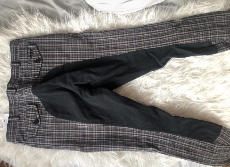 Spodnie w kratę - Kupię parę bryczesów Pfiff w doskonałym stanie. Były noszone tylko raz i dlatego są w idealnym stanie🦋 Jest na nich napisane, że to rozmiar 40, ale myślę, że pasują jak średnie. Jeśli masz jakieś pytania lub chcesz więcej zdjęć, proszę wysłać wiadomość do mnie💐.