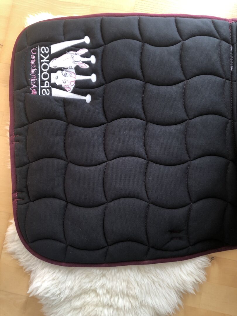 Ledwo używana podkładka pod siodło Spooks. Został założony na konia tylko do przymiarki i nie był jeszcze używany z siodłem do jazdy, więc jest jak nowy i świeżo wyprany. Piękna mocna winna czerwień.