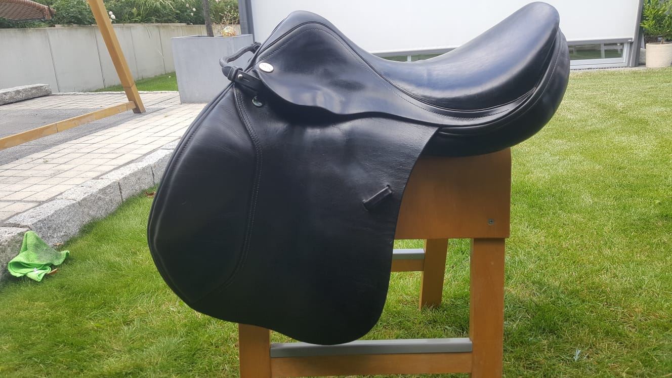 Spring Sattel Jaguar / Harry Dabbs - Na sprzedaż jest to siodło skokowe angielskiej marki Jaguar (dawniej Harry Dabbs). Siodło ma 17 " i ma krótką powierzchnię styku z powodu francuskich paneli. Posiada również szeroki kanał grzbietowy i lekkie wychylenie. Używany był na klaczy 140 cm. i jest bardzo wygodny do siedzenia. Szczegółowe informacje i wymiary można zobaczyć na zdjęciach. Jeśli masz jeszcze jakieś pytania, napisz wiadomość :)