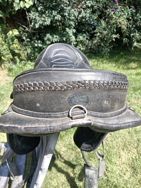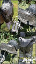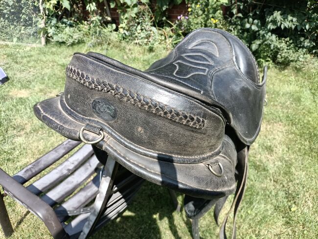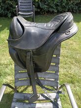 Siodło jest sprzedawane tak, jak pokazano na zdjęciach z akcesoriami. - z popręgiem brzusznym (55 cm) i podkładką pod popręg brzuszny (neopren) - ze strzemionami i popręgami do strzemion - w tym wyściełana podkładka z prześwitem na kręgosłup