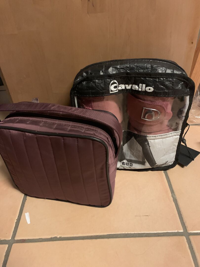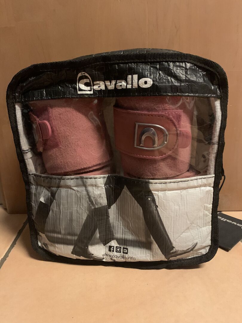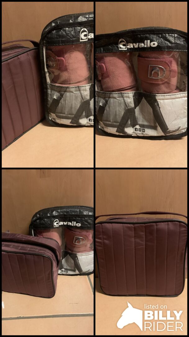 Prawy bandaż pochodzi z Cavallo w kolorze malinowym. Mam też pasujący kantar z liną. Możesz je kupić razem, ale nie jest to konieczne. Cena wynosi 20 euro za bandaże i 30 euro za kantar z liną.