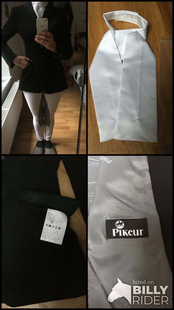 Sprzęt do jazdy turniejowej - Niniejszym oferuję na sprzedaż mój sprzęt jeździecki marki Tunier. Kurtka ma rozmiar 72 (długość 36), a spodnie mają rozmiar 76 (długość 38). Ubrania były noszone około 5 razy. Saszetka jest wykonana z poliestru i można ją prać w pralce. Jest bardzo wygodny i ma przyjemną szarą podszewkę. Białe spodnie Piquer Lugano mają szare, pełne siedzenie. Są wykonane z poliamidowej mikrofibry, szybkoschnące i bardzo wygodne. W zestawie znajdują się również 2 plastrony i posrebrzana spinka do jazdy. Chętnie dodam moje praktyczne spodnie przeciwdeszczowe, aby białe spodnie były chronione na turnieju i pozostały czyste aż do egzaminu! Jest to sprzedaż prywatna, bez możliwości zwrotu, bez gwarancji.