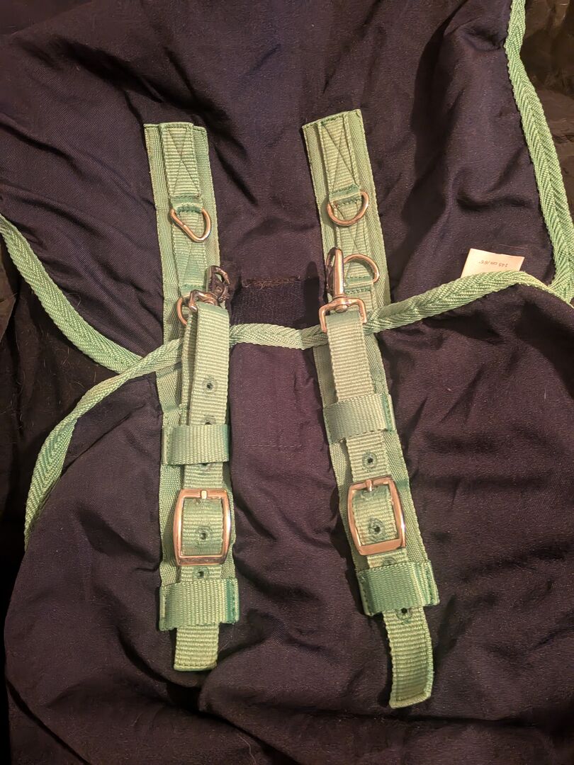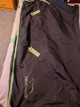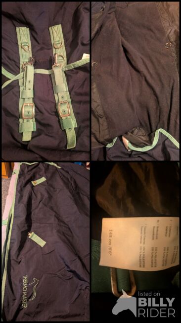 Stabilna osłona - Raz użyty stabilny dywanik firmy ThermoMaster w rozmiarze 145cm. W pełni funkcjonalny, nieuszkodzony. Bez pasków na nogi. Zmatowiałe pierścienie i klamry. Przekazanie możliwe w okolicach Berlina, w przeciwnym razie plus wysyłka.