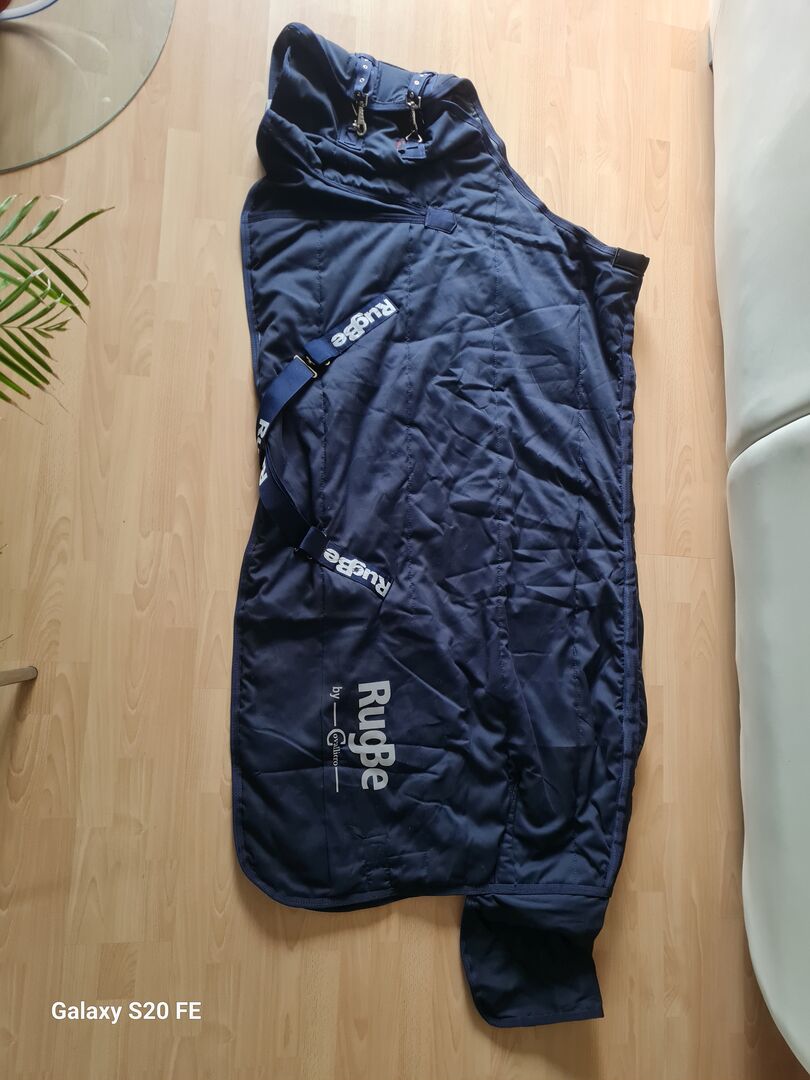 Stabilny dywanik 135cm o wadze 150g - Do sprzedania nienoszony, nowy dywanik stajenny firmy RugBe w rozmiarze 135cm z wypełnieniem 150g. Bez plam i dziur.