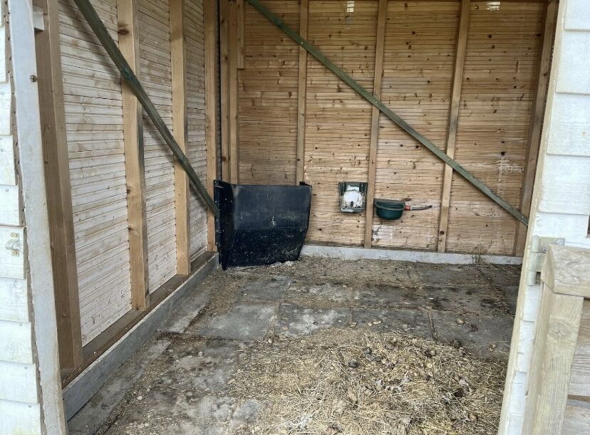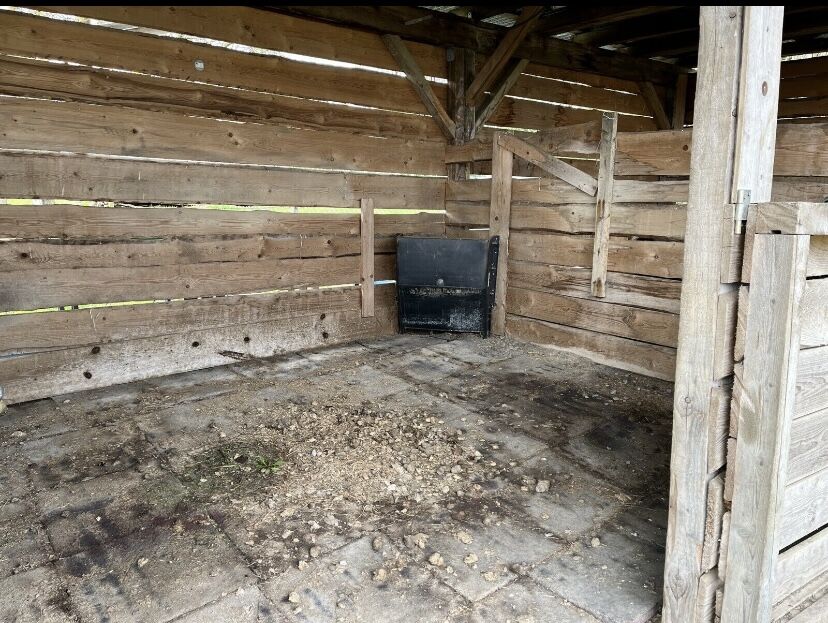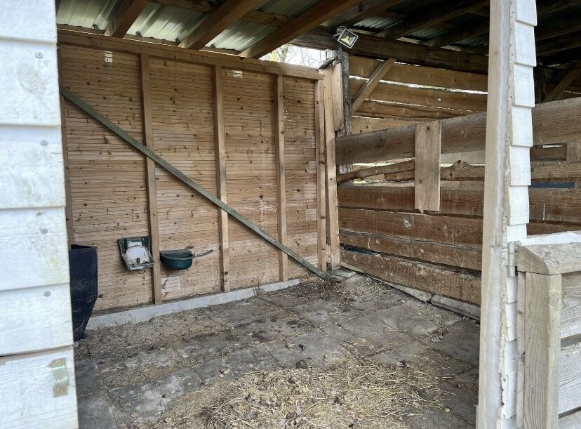 Stajnia/otwarta stajnia do samodzielnego demontażu - Oferuję kompletną stajnię do samodzielnego demontażu. Stajnia składa się z trzech boksów. Dwa stanowiska mają wymiary 4x4 m, jedno stanowisko 3x3 m. Stanowiska mają przegrody o wysokości połowy wysokości, drzwi z zamkami zawiasowymi, półkę na siano i dwa poidła pływakowe. Dach wykonany jest z blachy trapezowej, a na podłodze ułożone są maty chroniące przed upadkiem. Ponadto znajduje się tam wiata na siano, szafka wojskowa, cztery mniejsze szafki, beczka IBC o pojemności 1000 litrów, a także plastikowe słupki ogrodzeniowe, skrętka, izolatory i klamki do bram. Wszechstronny, beztroski pakiet.
