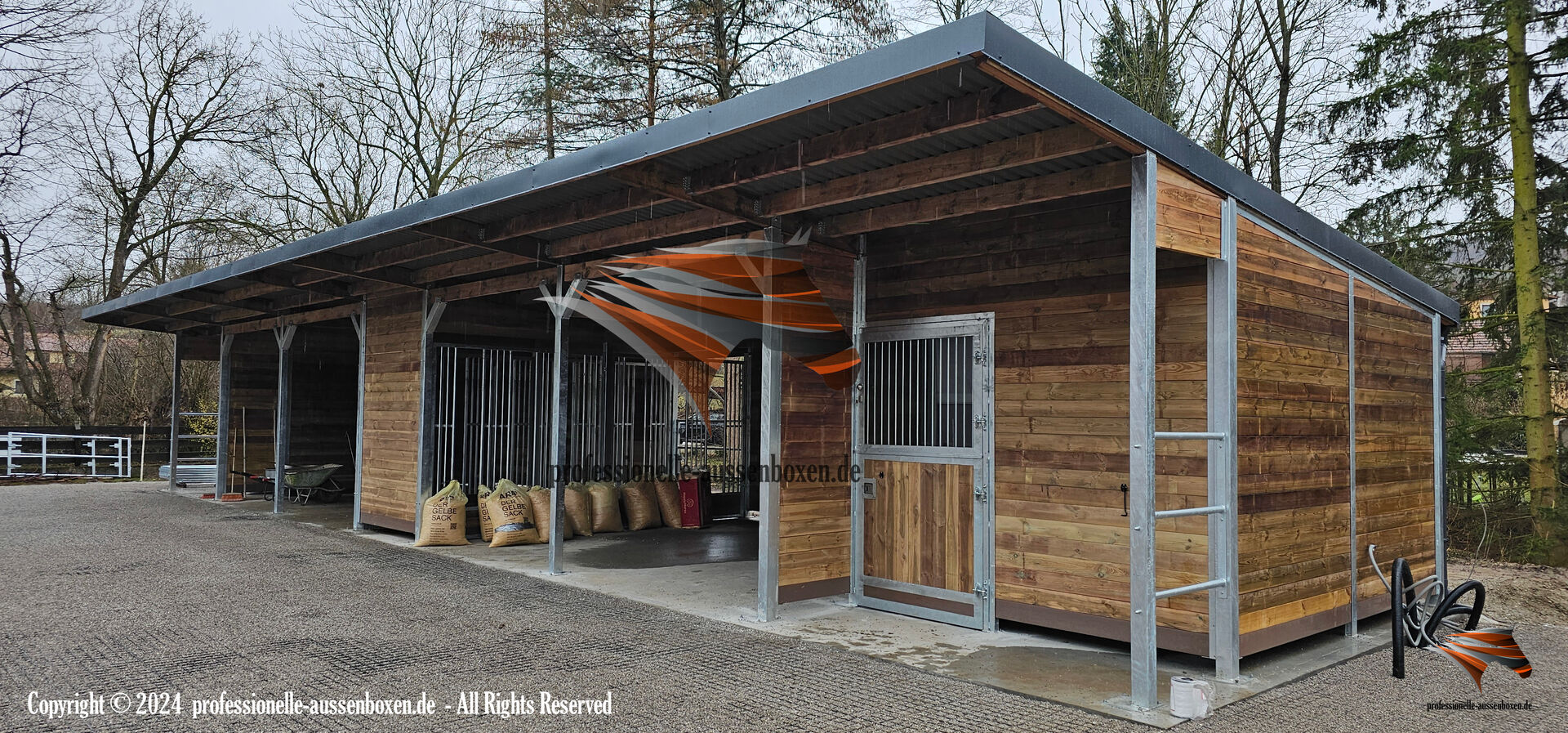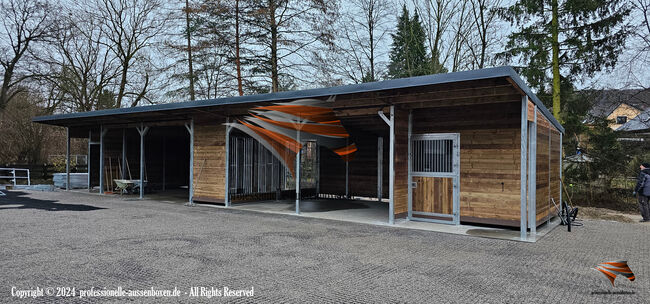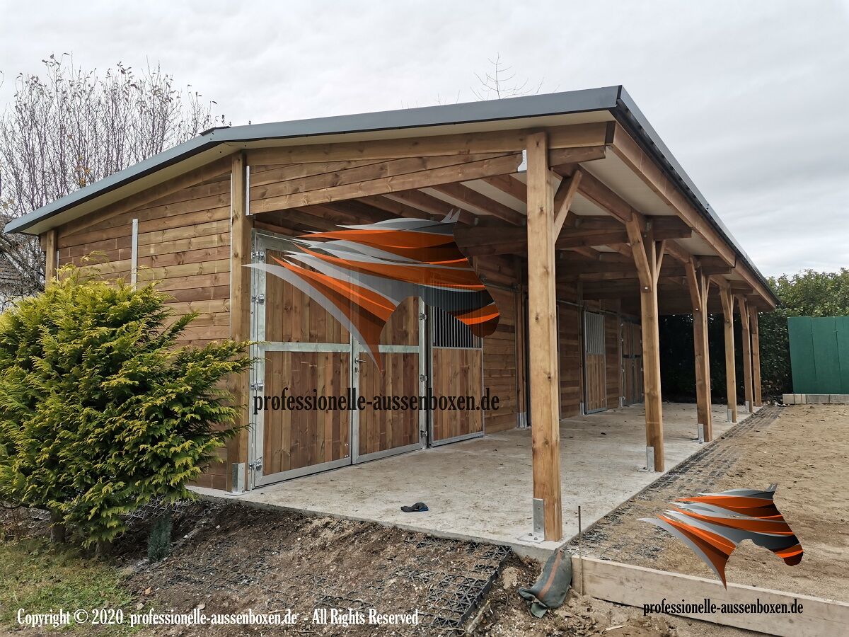 Stajnie zewnętrzne - Zbuduj stajnię, kup idealne stajnie i otwarte stajnie | Budynek stajni - Strona internetowa: www.professionelle-aussenboxen.de