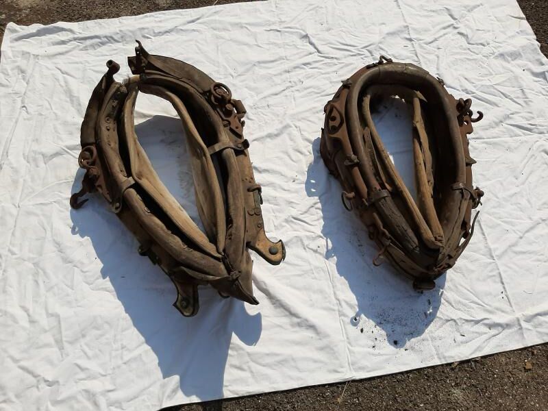 stare cummety, uprząż dla konia, uprząż dla wołu, siodło - stare uprzęże Perde i dla wołów na sprzedaż, np. jako dekoracja różne cummety, siodła, różne paski, liny, kirysy (liny nie pokazane) Poszczególne części można kupić, ale także wszystko razem Cena do uzgodnienia Prosimy o zrozumienie, że można zaoferować tylko odbiór