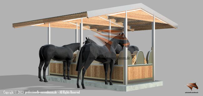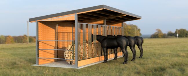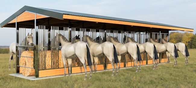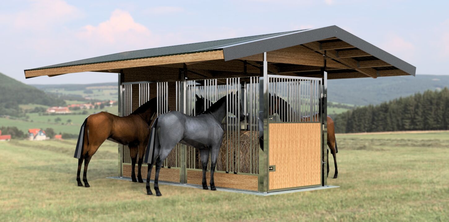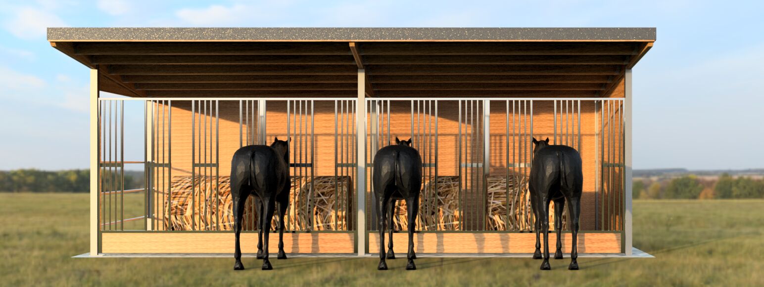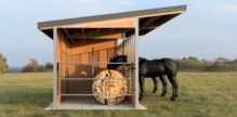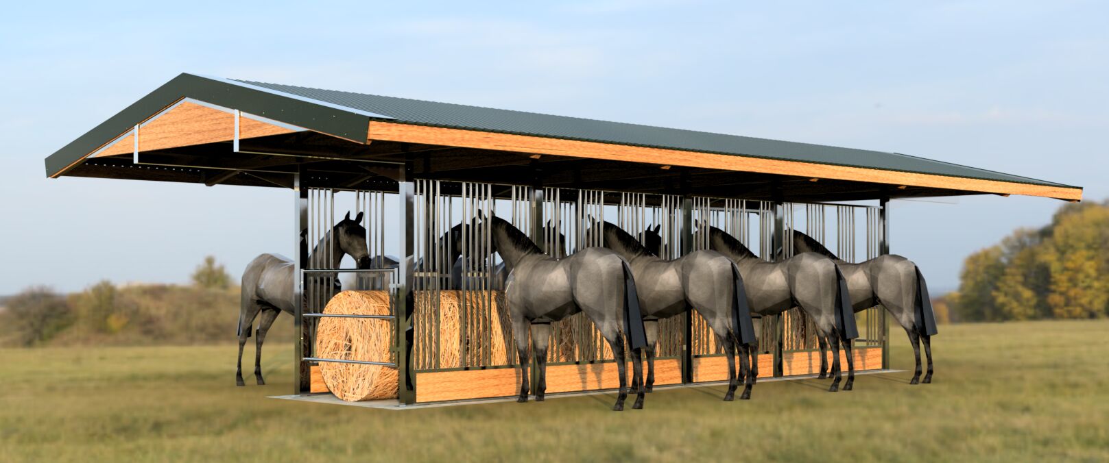 stojak na konie | stojak na siano | stojak na paszę | ogrodzenie paszowe | karmienie koni | pasza dla koni | otwarta stajnia | utrzymanie koni | budowa stajni dla koni | boks dla koni