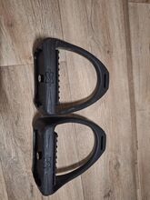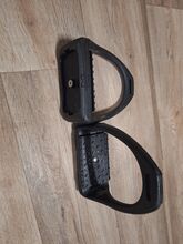 Strzemię Compositi - Na sprzedaż: strzemiona Compositi Flex z dużym, elastycznym, antypoślizgowym bieżnikiem wykonanym z twardego tworzywa sztucznego. Pozwala to jeźdźcowi lepiej stać, a jednocześnie ma przyjemny efekt amortyzujący, który odciąża stawy i mięśnie.