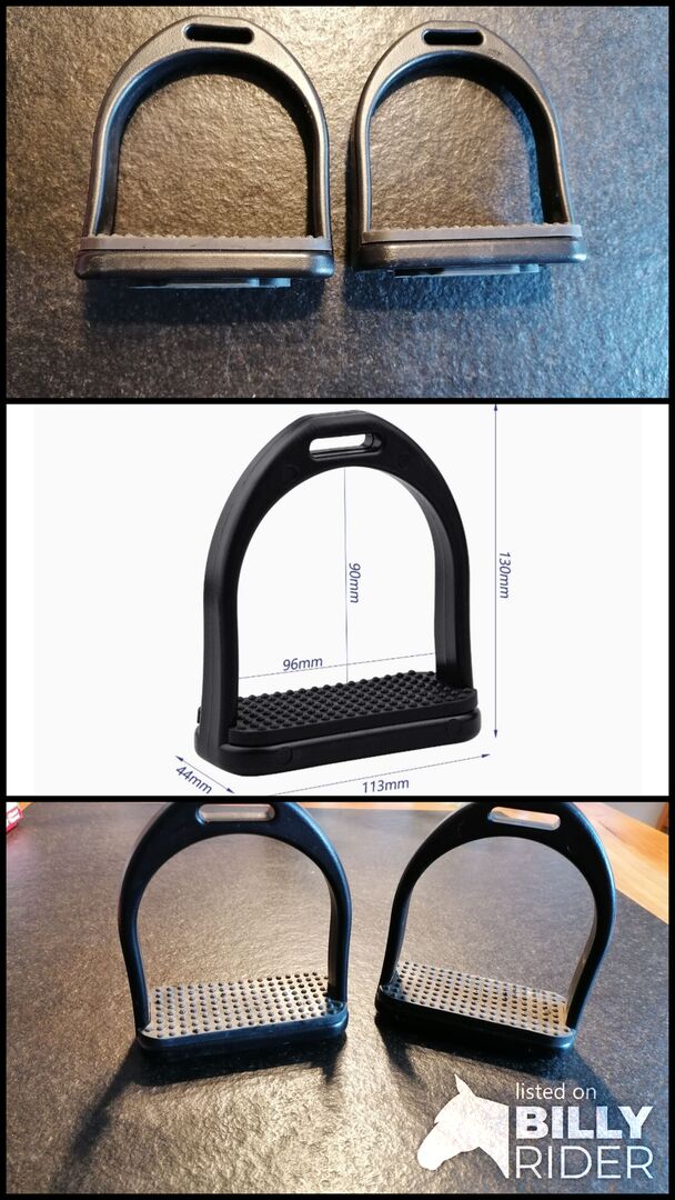 Strzemiona - Oferta tylko raz używanych strzemion plastikowych w kolorze czarnym.