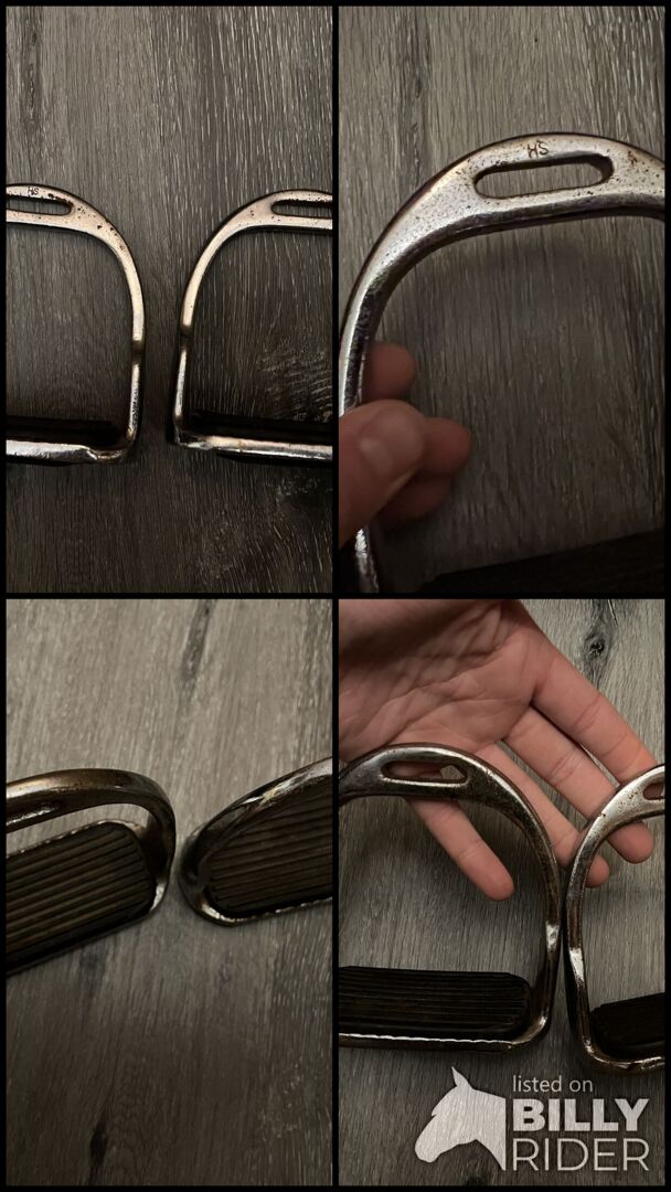 Strzemiona dla dzieci - Sprzedaję używane strzemiona dla dzieci, których nie potrzebuję. Są dobrze używane i dlatego mają trochę rdzy na lakierze (patrz zdjęcia). Niemniej jednak mogą być używane w pełnym zakresie. Bieżnik ma szerokość 10 cm, typową dla dzieci. Wkładki strzemion są bardzo miękkie i jeszcze nie twarde.