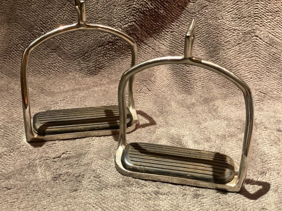 Strzemiona islandzkie - Strzemiona islandzkie w bardzo dobrym stanie od firmy Krämer. Na siodle bywały rzadko, od czasu do czasu do jazdy dla dzieci, więc po czyszczeniu są jak nowe. Zazwyczaj obrócone o 90 stopni, tak aby stopa była pewnie osadzona w strzemieniu.