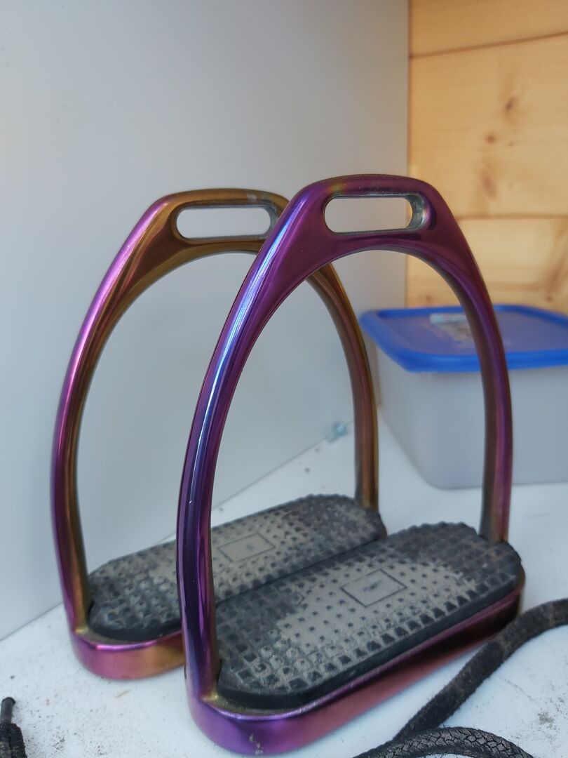 Strzemiona Tęczowe Kolory 12cm Podnóżek - Strzemiona były mało używane i są w dobrym stanie Patrz zdjęcie