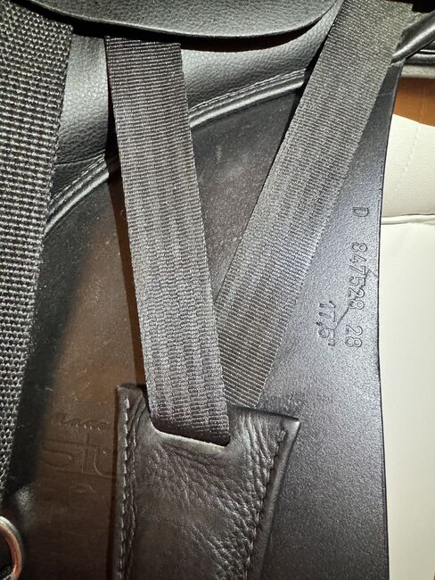 Numer siodełka: D 847528 Rozmiar siedziska: 17,5 Szerokość siedziska 28 cm W zestawie oryginalny pokrowiec na siodełko Siodełko było używane tylko przez pół roku i jest w prawie nowym stanie.
