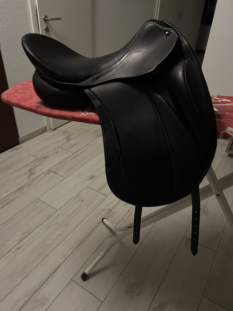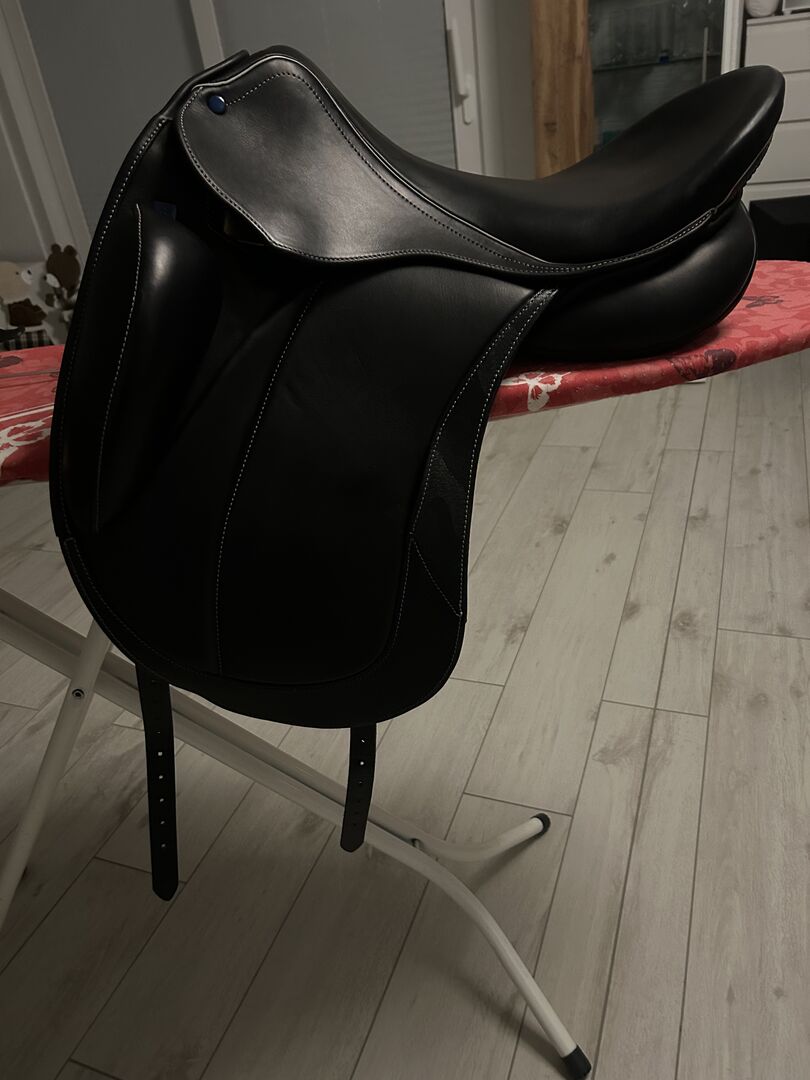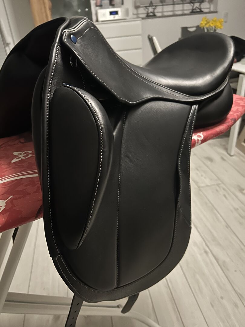 Zapotrzebowanie na maksymalną bliskość konia charakteryzuje cały projekt. Szeroka powierzchnia siedziska w obszarze guzów kulszowych w połączeniu z głębokim, wąskim siedziskiem pozwala poczuć każdy ruch konia i zapewnić niezwykle precyzyjne pomoce. Klapa mono dopasowuje się ściśle do klatki piersiowej podczas opasania i dodatkowo wzmacnia bezpośredni kontakt. Ukierunkowane wzmocnienie w panelu pod płytą wpustową zapobiega szczytom ciśnienia, poprawia rozkład masy i, wraz z szeroką powierzchnią styku, zapewnia wysoki poziom komfortu po stronie konia.