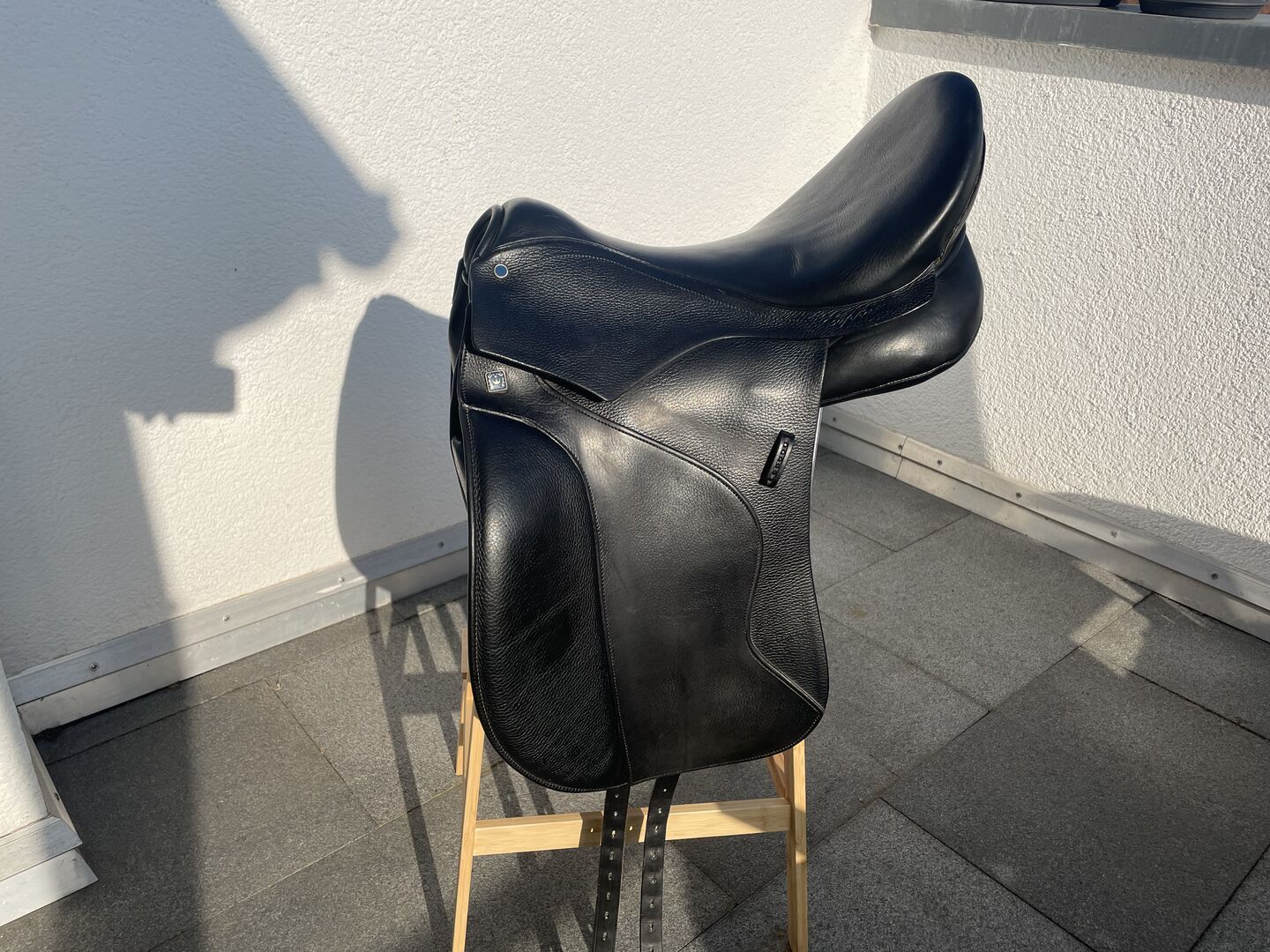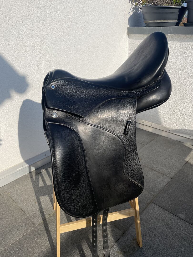 SIODŁO UJEŻDŻENIOWE EUPHORIA Model "Euphoria" wykonany jest z wąskiego NT-steelfederbaum. Nowa technologia "Free Move" została zintegrowana z bardzo głębokim siedziskiem. Dzięki temu kobiety nie mają problemów ze wstawaniem. Dodatkowo siedzisko jest szczególnie miękkie i wygodne dzięki specjalnemu rodzajowi obicia. Nowy Wollkissen "Maxi Fit" charakteryzuje się dużą powierzchnią i szerokim kanałem wirowym. W obszarze Schultermuskulatur podkładka jest pochylona do tyłu, co ułatwia optymalny rozwój jakości ruchu i chwytu przestrzennego. Specjalny V-Begurtung zapewnia idealne rozłożenie ciśnienia. Wysokie, anatomiczne podparcie nóg sprzyja dobremu ułożeniu nóg. Na życzenie klienta pauza może zostać samodzielnie zmodyfikowana. Pętla kolanowa jest wyściełana nowym, szczególnie miękkim materiałem, dzięki czemu od początku otula kolano. Tylny pasek siodła pokryty jest czarnymi kamieniami Swarovskiego i nadaje "Euphorii" szczególny szlachetny wygląd. Możesz również wybrać dowolny inny rodzaj dżetów. 6 schwarze "Kryształki" w standardzie Opcje: De Luxe, Biomex, Ortspitzenverlängerung, Straß im Efter, veschiedene Nahtfarben, Unzählige Anpassungsmöglichkeiten PECJALIA: Wykończenie z ziarnistej skóry Wypełnienie tonalne ekstra głębokie siedzisko szczególnie miękkie siedzenie krótka poduszka V-Gurtung Wzór dla klamek drzwiowych NT-Sattelbaum Czarny dżet na pasku na ramię