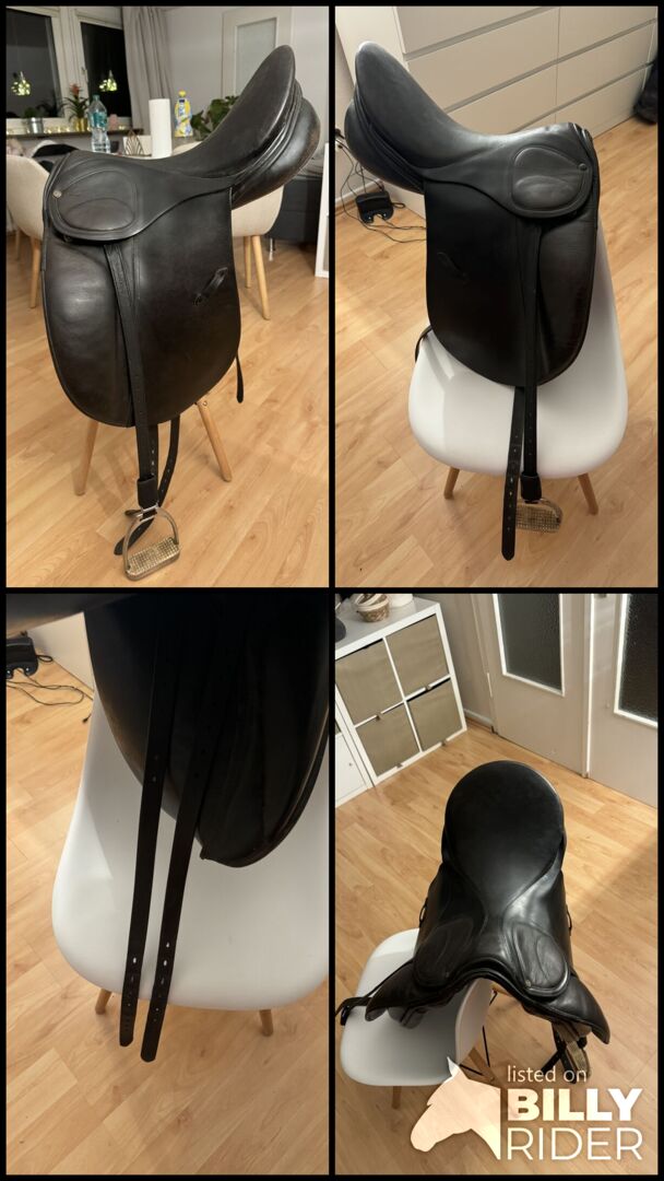 Niniejszym oferuję nieco starszą, ale wciąż w dobrym stanie derkę Stübben Mateoso 18 cali. Sprzedaję je tylko dlatego, że niestety nie pasuje na mojego konia. Strzemiona i popręg są wliczone w cenę. Siodło można przetestować za kaucją w wysokości ceny zakupu.