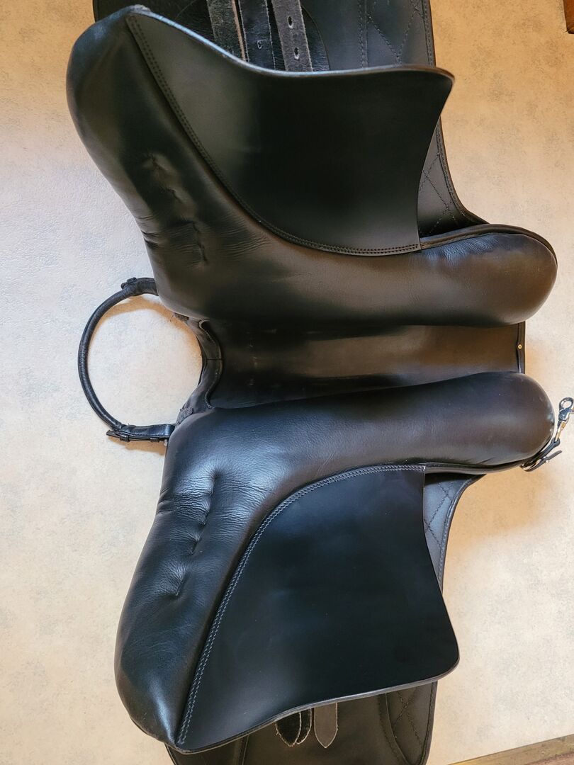 Sprzedam bardzo dobrze zachowany Stübben Traveler De Lux KW 32, krótkie panele, siedzisko 18,5". ze skórami strzemion, strzemionami i klapkami. Siodło było bardzo mało używane i zawsze przechowywane w suchym miejscu. Nie było na koniu od 4 lat. Sprzedawane, ponieważ koń nie jest już jeżdżony. Bez gwarancji i bez możliwości zwrotu.