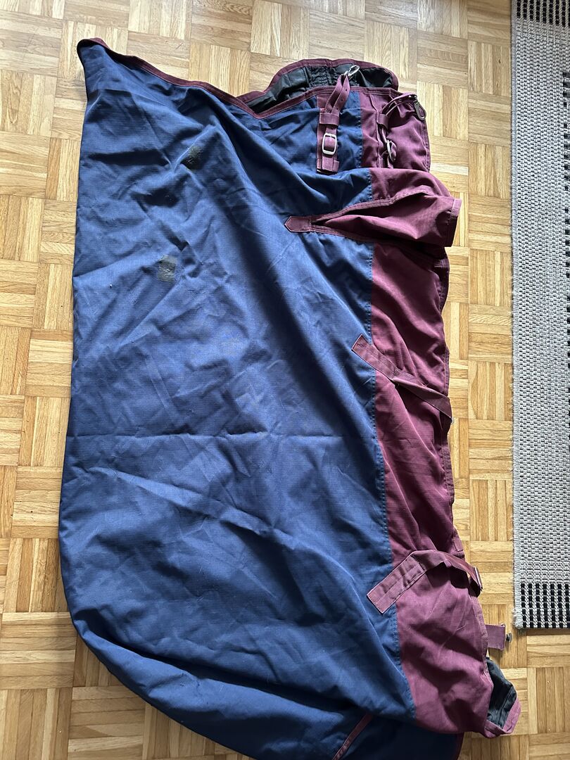Sufit od Equtak - Oferuję tutaj koc 50g high neck firmy Equtiak. Niewielkie dziury zostały zakryte łatami namiotowymi. Kocyk został wyprany i zaimpregnowany.