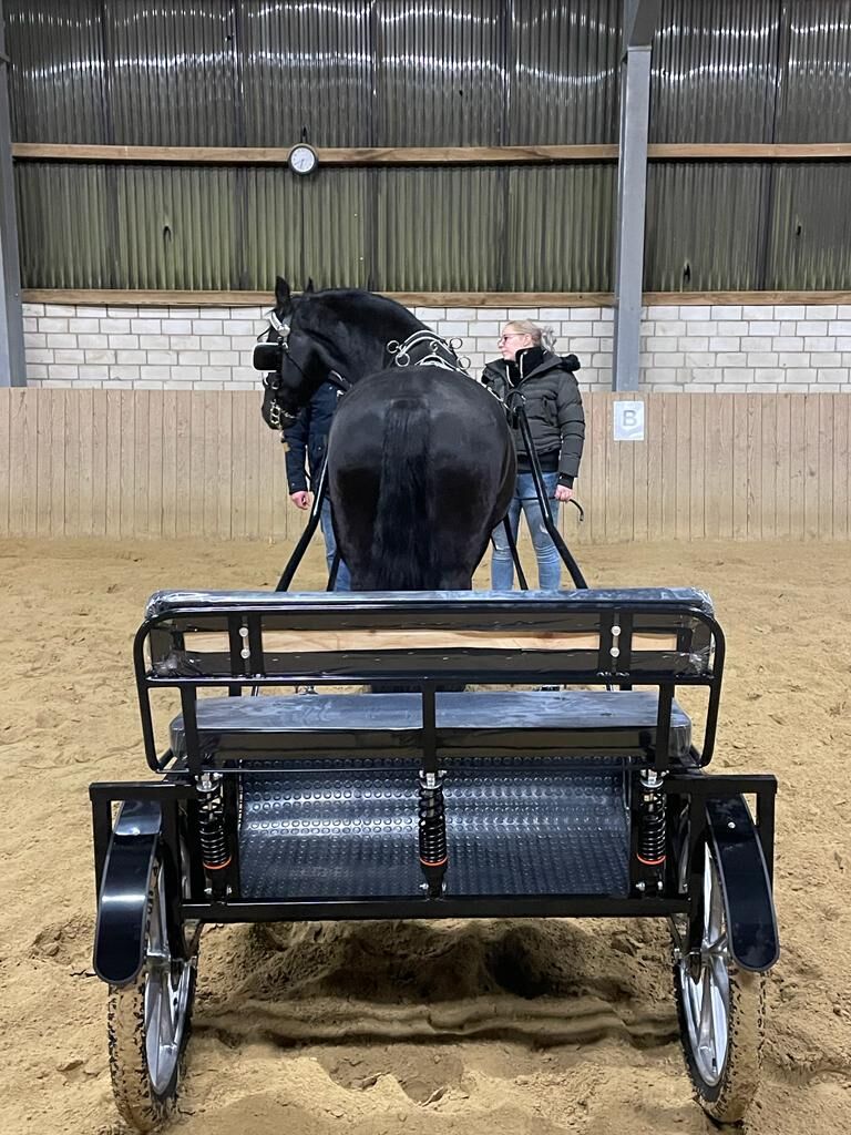 Sulky "Courbette" dla większych kucyków i dużych koni - Sulky dla kucyków i dużych koni "Courbette" to doskonały wybór dla wszystkich większych kucyków i koni. Courbette" jest odpowiedni dla kucyków o wzroście od 1,30 m do dużych koni o wzroście do 170 cm. Szerokość końcówek nożyc można regulować bezstopniowo. Fotelik oferuje miejsce dla 2-3 osób i jest wyposażony w trzy gazowe sprężyny naciskowe zapewniające najwyższy komfort jazdy. Sulky jest hamowany za pomocą hamulców tarczowych.