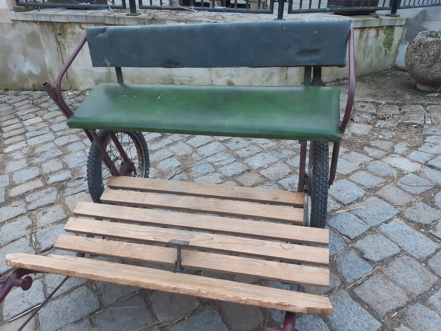Sulky/Gig dla kucyków i małych koni - Sprzedaję tutaj mój kucyk sulky/gig. Uważam, że kucyk powinien mieć co najmniej 140 m. Wózek sulky/gig ma hamulce, wyściełane siedzisko i oparcie.
