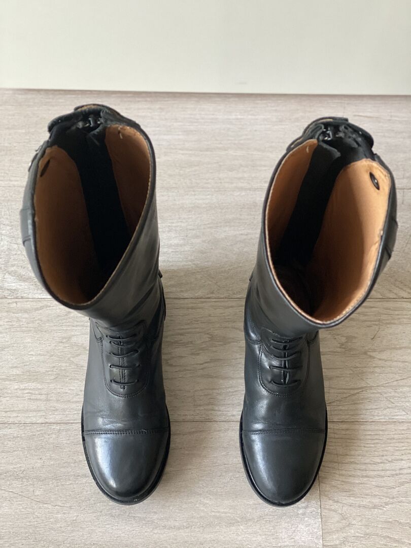 super buty do jazdy konnej - Buty do jazdy konnej z czarnej skóry, z paskami do ostróg. Bardzo dobrze zachowany i mało noszony. Czekamy na wiadomości :)