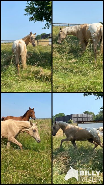 Super elegancki wałach Appaloosa, który nie pozostawia nic do życzenia - Wyjątkowy wałach rasy Appaloosa - z niemieckimi i amerykańskimi papierami. Baloo - jego wygląd mówi więcej niż tysiąc słów. Łączy w sobie wszystko, czego można chcieć od nowoczesnego Appaloosa! Baloo jest świetny w obsłudze i bardzo zorientowany na ludzi. Teraz, mając nieco ponad rok, może przenieść się do nowego domu, gdzie przyniesie swoim ludziom wiele radości. Oprócz niezwykłego umaszczenia, ma bardzo dobry ruch z imponującymi przejściami, wyraźnymi chodami i doskonałą zwinnością. Ponadto ma super warunki, aby stać się świetnym partnerem również psychicznie: ciekawski, bardzo wyluzowany, odważny i chętny do nauki. Ze względu na swoją budowę, spokój i świetne umaszczenie, z pewnością byłby świetnym partnerem na ring pokazowy w przyszłości. Pleasure, Reining, Trail - po prostu wszechstronny. Oczywiście zna ABC krycia. Zostanie sprzedany tylko w dobre, chętne ręce. Zarówno matka Charming Honey, jak i ojciec Mighty Golden Shadow przekazali swojemu synowi wspaniały charakter i dobrą budowę. Oba można obejrzeć na farmie. Wszystkie mają negatywny 5-panelowy test. Wszystkie moje konie dorastają w stadzie z 24-godzinnym pastwiskiem w miesiącach letnich i otwartą stajnią w zimie. Są więc bardzo dobrze zbalansowane i doskonale zsocjalizowane. Oczywiście wszystkie są regularnie prezentowane kowalowi oraz regularnie odrobaczane i szczepione. Moje konie są idealne do wymagających sportów, ale także jako konie rekreacyjne, świetni partnerzy, na których można polegać w każdej sytuacji. Proszę o kontakt w celu uzyskania dalszych informacji. 32816 Schieder-Schwalenberg Kontakt Bianca Rueter-Kreienmeier Tel.: 0160 97527863