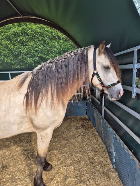 Super elegancki Welsh Cob w specjalnych barwach - Flan Caramell urodził się 01 czerwca 2022 roku, więc w tym roku skończy 4 lata. Pochodzi ze znanej stadniny Pegas Welsh Cob w Bawarii, ma doskonały rodowód, specjalne umaszczenie, długą grzywę i jest absolutnie bajkowym koniem. Ma dobry wzrost 153 cm. Rozstaję się z nim tylko z powodu ogromnego braku czasu. Ma zostać zajeżdżony w tym roku. Jest teraz dostępny w bardzo korzystnej cenie (cena źrebaka + transport). Chciałabym znaleźć kogoś, kto doceni młodego konia, którego będzie mógł sam trenować i kto będzie w stanie zaoferować mu dobre warunki w otwartej stajni lub z całodziennym padokiem i najlepszym sianem. Mam również świetny kontakt w Wald4tel do włamania. Jeśli istnieje poważne zainteresowanie, chętnie odpowiem na pytania, ale wtedy chciałbym, abyś osobiście poznał konia, aby ocenić, czy jest to dobre dopasowanie, czy nie. Nie wysyłam tysięcy zdjęć i filmów. Koń jest w moim domu niedaleko Halbturn (za jeziorem Neusiedl).