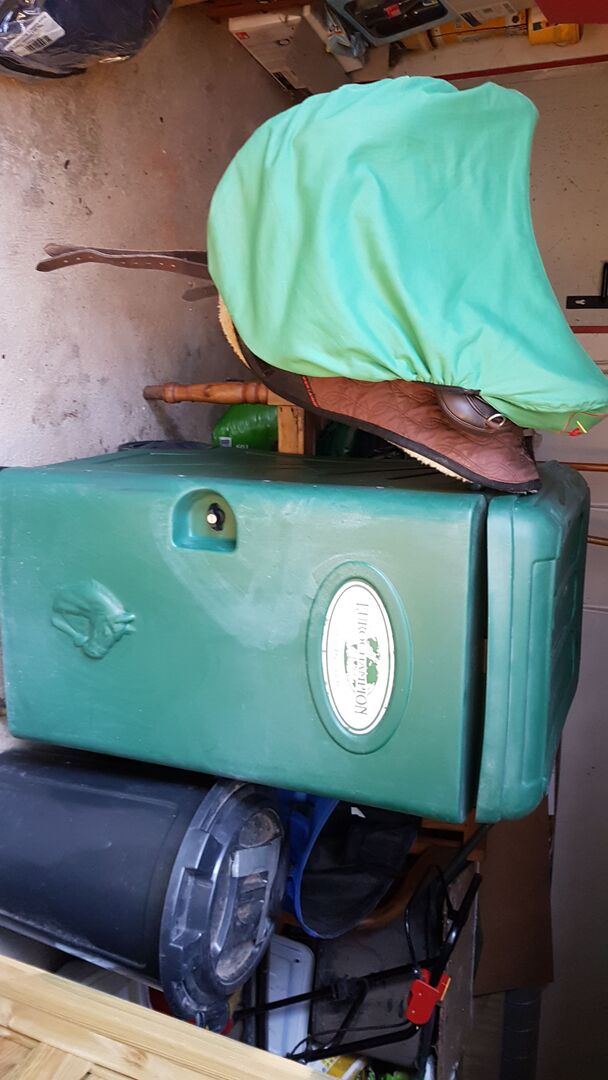Super mobilna szafka na siodła na sprzedaż - Sprzedaję przenośny schowek na siodło. Wewnątrz znajdują się dwa uchwyty na siodła, a po wewnętrznej stronie drzwi kilka dużych haczyków. Pod pokrywą znajduje się również miejsce do przechowywania innych akcesoriów. Na zewnątrz znajduje się jeszcze jeden uchwyt/drążek na siodło, który można wyciągnąć, jeśli chcesz zabrać szafkę ze sobą, na przykład do kącika pielęgnacyjnego lub do stajni. Szafka jest zamykana na klucz. NP powyżej 500 €. Stan dobry, używany.