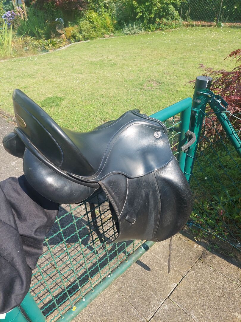 Super siodełko na sprzedaż - Na sprzedaż wciąż w dobrym stanie siodło ujeżdżeniowe marki Kiefer. Jest bardzo miękkie do siedzenia. Rozmiar można zobaczyć na zdjęciach. Siodło można dopasować do konia za pomocą regulowanego przełyku. Popręgi są trochę luźne, ale nie przeszkadzało mi to i trzymały. Jeśli masz jakieś pytania, napisz do mnie.