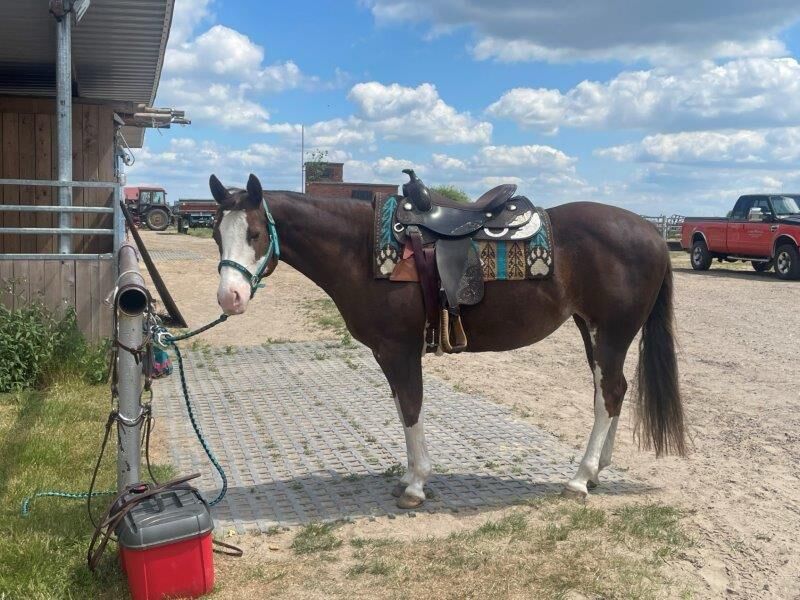 Super urocza, kochająca dzieci klacz rasy Paint Horse - Lokalizacja: 14612 Falkensee Z ciężkim sercem ta wspaniała klacz rasy Paint Horse szuka nowego domu, ponieważ skupia się bardziej na jeździe konnej. Katy urodziła się w 2016 roku i ma szacunkową wysokość 145 cm. Ta klacz jest po prostu koniem marzeń - bardzo kochana, uwielbia dzieci, ma absolutnie uroczy charakter, idzie na wszystko i zawsze chce się podobać. Idealna jako koń rodzinny dla młodych i starszych. Klacz ma podstawowe szkolenie westernowe (LK3) i świetnie radzi sobie w terenie. Sama i w grupie. Bardzo dobrze zachowuje się pod siodłem, dlatego nadaje się również dla dzieci i słabych jeźdźców. Powinna być regularnie ćwiczona, aby utrzymać odpowiednie napięcie mięśniowe. Jest sprzedawana jako towarzysz rekreacyjny, częściowo z powodu kulawizny nogi nachylonej spowodowanej złamaniem miednicy w młodym wieku. Zmniejszy się to, jeśli będzie regularnie pracować. Byłaby również interesująca jako klacz hodowlana. (6-panel i PSSM 2 n/n). Jest wnuczką Wimpys Little Step. Po stronie matki jest spokrewniona z Really Rugged Kid. Odpowiednie siodło można kupić na życzenie.