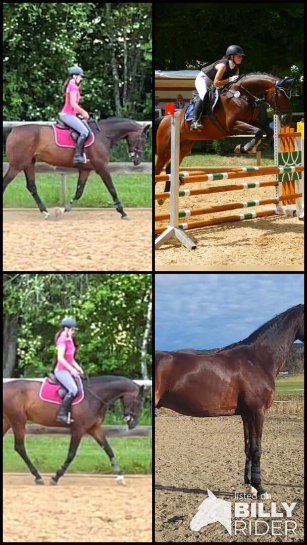 Super wszechstronny i absolutnie serdeczny koń na sprzedaż - Qwircle to 10-letni wałach hanowerski o wzroście 176 cm. Trenowany w skokach przez przeszkody do poziomu L/M. Przez ostatnie kilka lat był jeżdżony rekreacyjnie w ujeżdżeniu (kilka lekcji na poziomie L) i małych skokach. Czy to ujeżdżenie, gimnastyka skokowa, długie przejażdżki czy praca z ziemi - jest gotowy na wszystko i jest super instruktorem w każdej dziedzinie. W ujeżdżeniu jest zaangażowany i chętny do nauki. Zawsze jest zmotywowany na skoku i pokazuje swoje świetne wyszkolenie poprzez swoją niezawodność. Podczas jazdy na zewnątrz stał się absolutną polisą ubezpieczeniową na życie i jest nieustraszony w każdych warunkach pogodowych. Jego rozmiar sprawia, że jest idealny dla nieco wyższych jeźdźców. Qwircle jest absolutnie czarujący i dokładnie wie, jak pokazać się z najlepszej strony w codziennym kontakcie. Uwielbia być pielęgnowany i lubi towarzyski, przyjazny kontakt z innymi końmi w otwartej stajni (stado mieszane). Obecnie przebywa w krytym boksie i co pół dnia wychodzi na padok z klaczą. To również działa bardzo dobrze. Za odpowiednią dopłatą możemy zapewnić mu kompletne, dostosowane do jego potrzeb wyposażenie. Jego historia zdrowotna: Miał trzęsienie głową u poprzedniego właściciela, ale zostało to zredukowane do tego stopnia dzięki dobrej hodowli, że zimą nie ma nic, a latem można na nim jeździć całkowicie bez ograniczeń z siatką na nos. Obecnie przebywa pod adresem 83624 Otterfing w ładnej dużej stajni z krytą areną, areną, okrągłym kojcem i torem wyścigowym. Zostanie sprzedany tylko w najlepsze ręce. Miejsce przed ceną.
