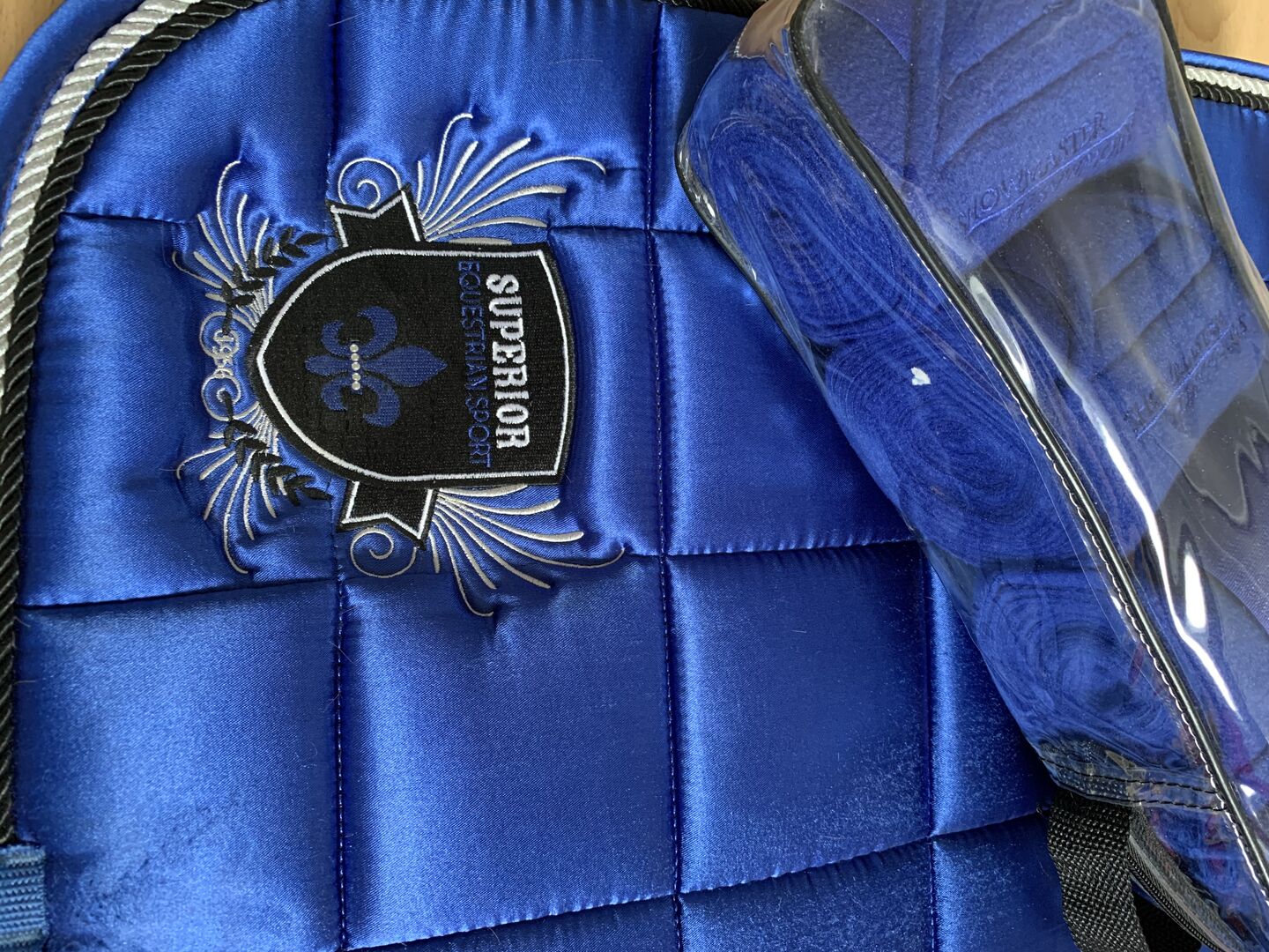 Piękny, błyszczący, niebieski pad pod siodło w doskonałym stanie!