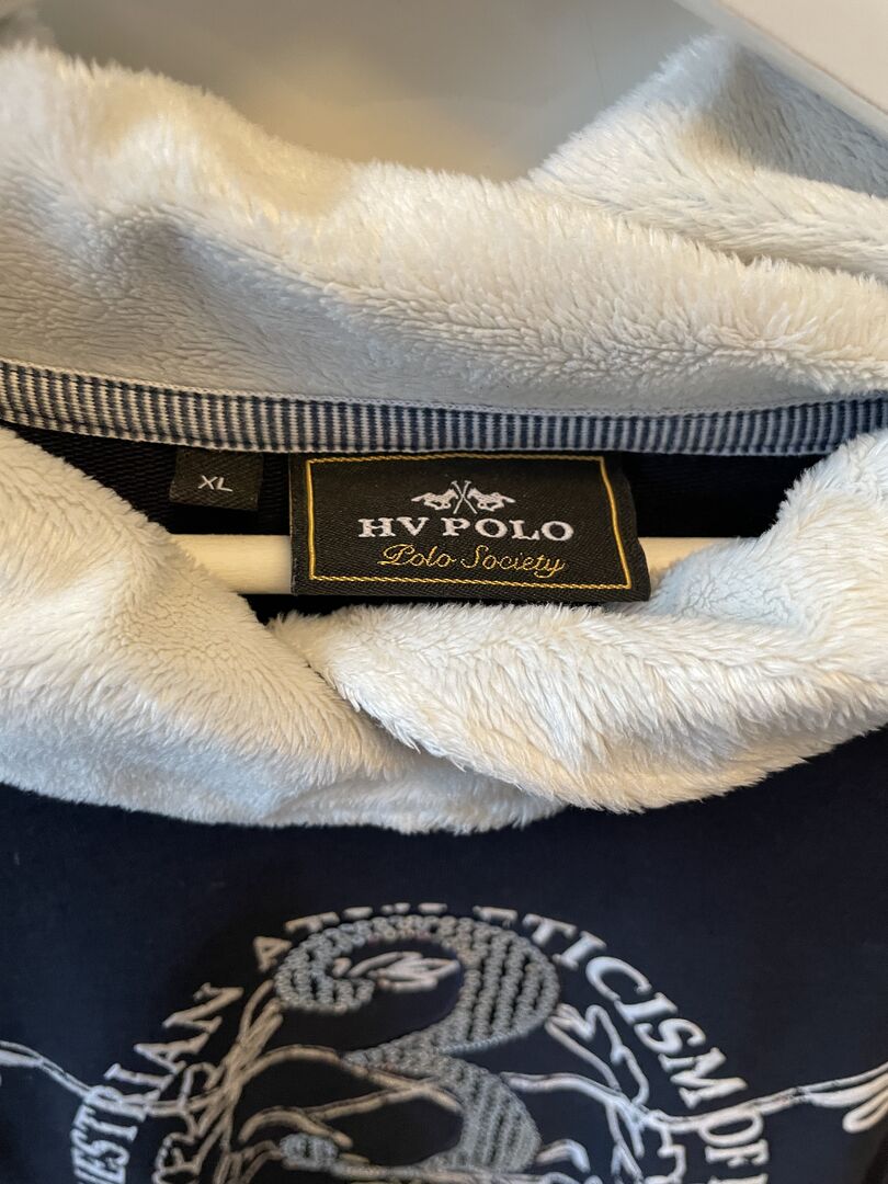 Sweter polo HV, sweter z długim rękawem - Stan bardzo dobry. Noszone tylko kilka razy. Z polarem na kołnierzu. Kieszenie zapinane na zamek błyskawiczny. Rozmiar 42/XL, pasuje do rozmiaru. Kolor ciemnoniebieski